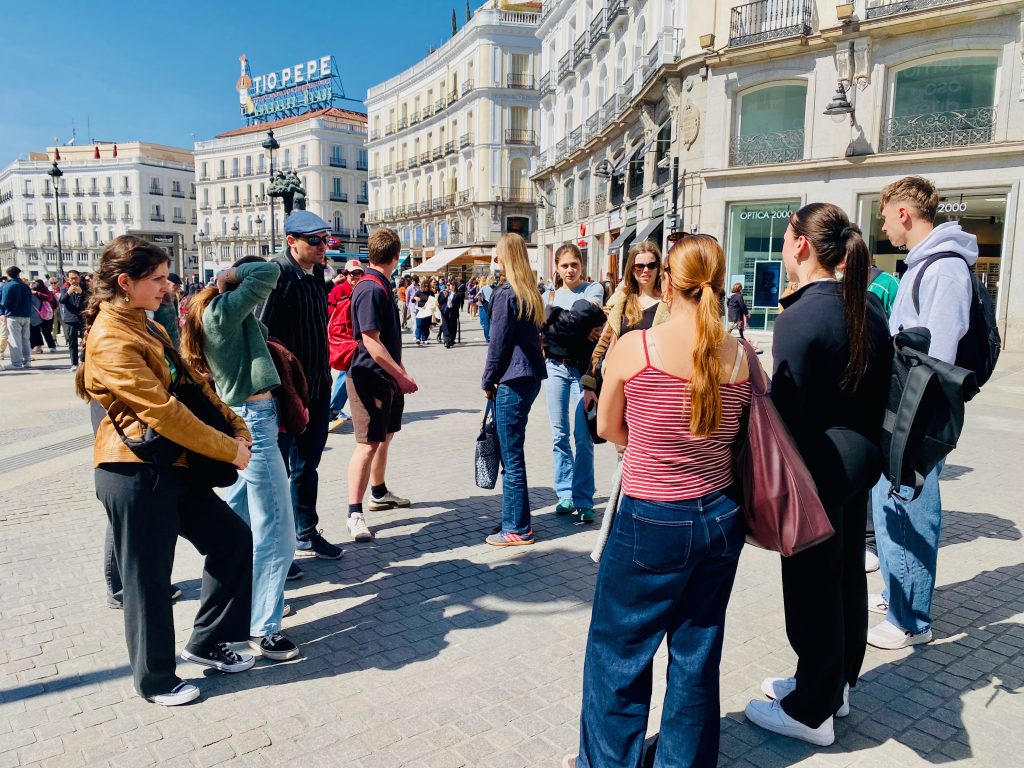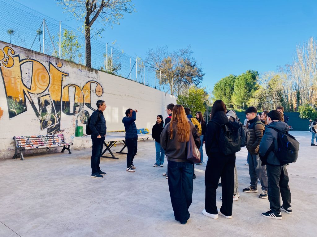 Ein Höhepunkt der Woche war der Tagesausflug nach Madrid. Die Schülerinnen und Schüler führten sich gegenseitig in kleinen Gruppen durch die Stadt und präsentierten zentrale Orte wie den Parque del Retiro, das Museo Reina Sofía mit Picassos berühmtem „Guernica“, die Puerta del Sol, die Plaza Mayor sowie den Palacio Real. Anschließend blieb Zeit für eigene Erkundungen und gemeinsames Essen in der Altstadt. Am Freitag präsentierten die deutsch-spanischen Gruppen ihre Projektergebnisse und Videotagebücher, die während der Woche entstanden waren. Die gemeinsame Abschiedsfeier bildete einen gelungenen Abschluss des Austauschs.