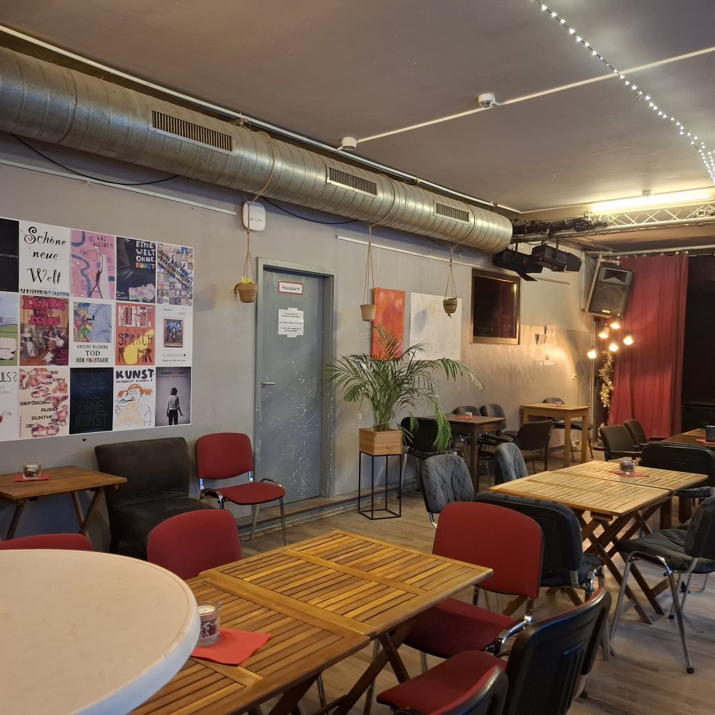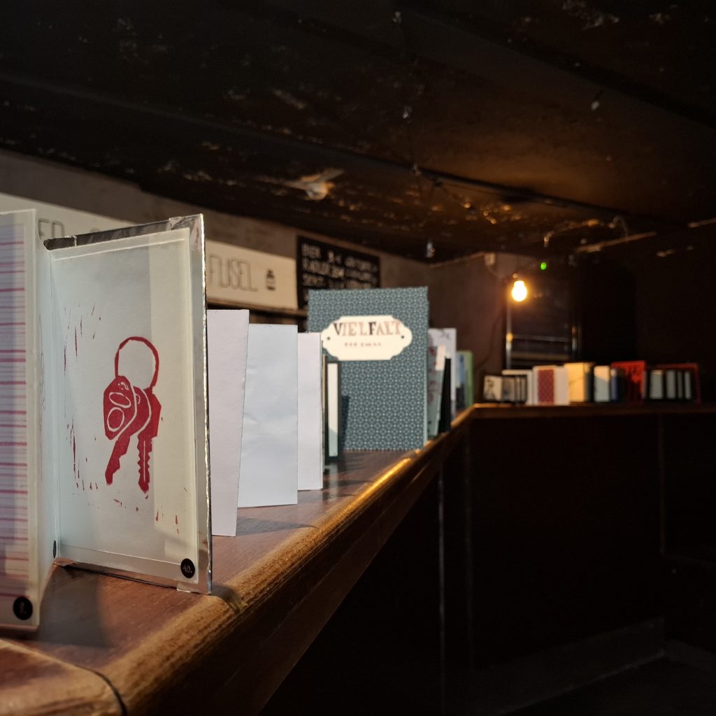 Unsere Ausstellung erstreckte sich über den Caferaum des MASCHA sowie die gesamte untere Etage, wodurch die Werke ganz unterschiedlich wirken konnten. Am Samstag und Sonntag war „rundum.“ parallel zum Cafébetrieb geöffnet.