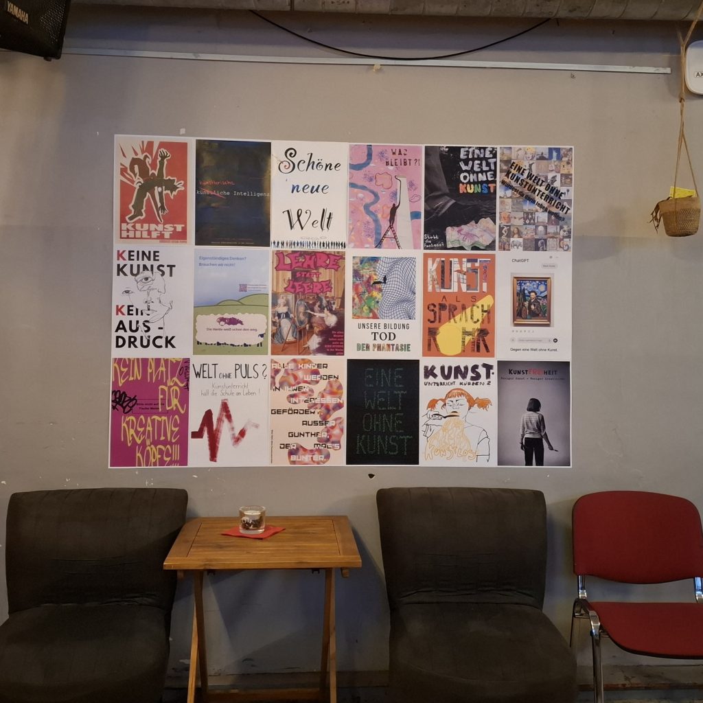 Dies wäre jedoch ohne ein paar unterstützende und helfende Hände nicht möglich gewesen. Daher bedanken wir uns beim MASCHA für die Möglichkeit, dort auszustellen. Und wir danken vor allem Frau Störlein für die tatkräftige Unterstützung während der Vorbereitung. Herzlichen Dank an Herrn Mitsching für das Drucken unserer Plakate (die Plakatwand könnt ihr in den beigefügten Bildern bewundern) und an Moritz und Johannes für die musikalische Begleitung der Vernissage. Zuletzt danken wir natürlich allen, die die Ausstellung besucht und belebt haben.